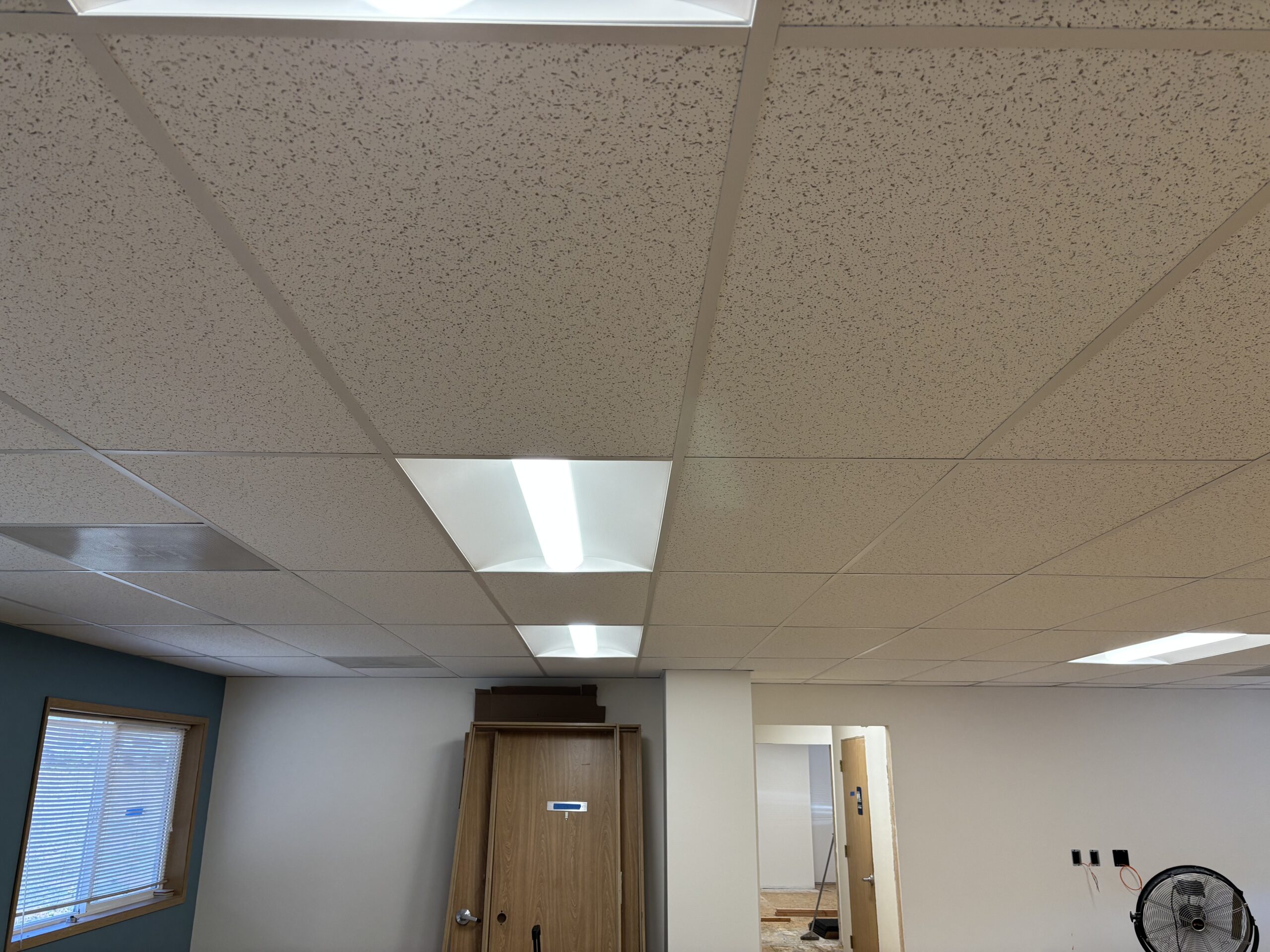 New acoustical grid ceiling installation.