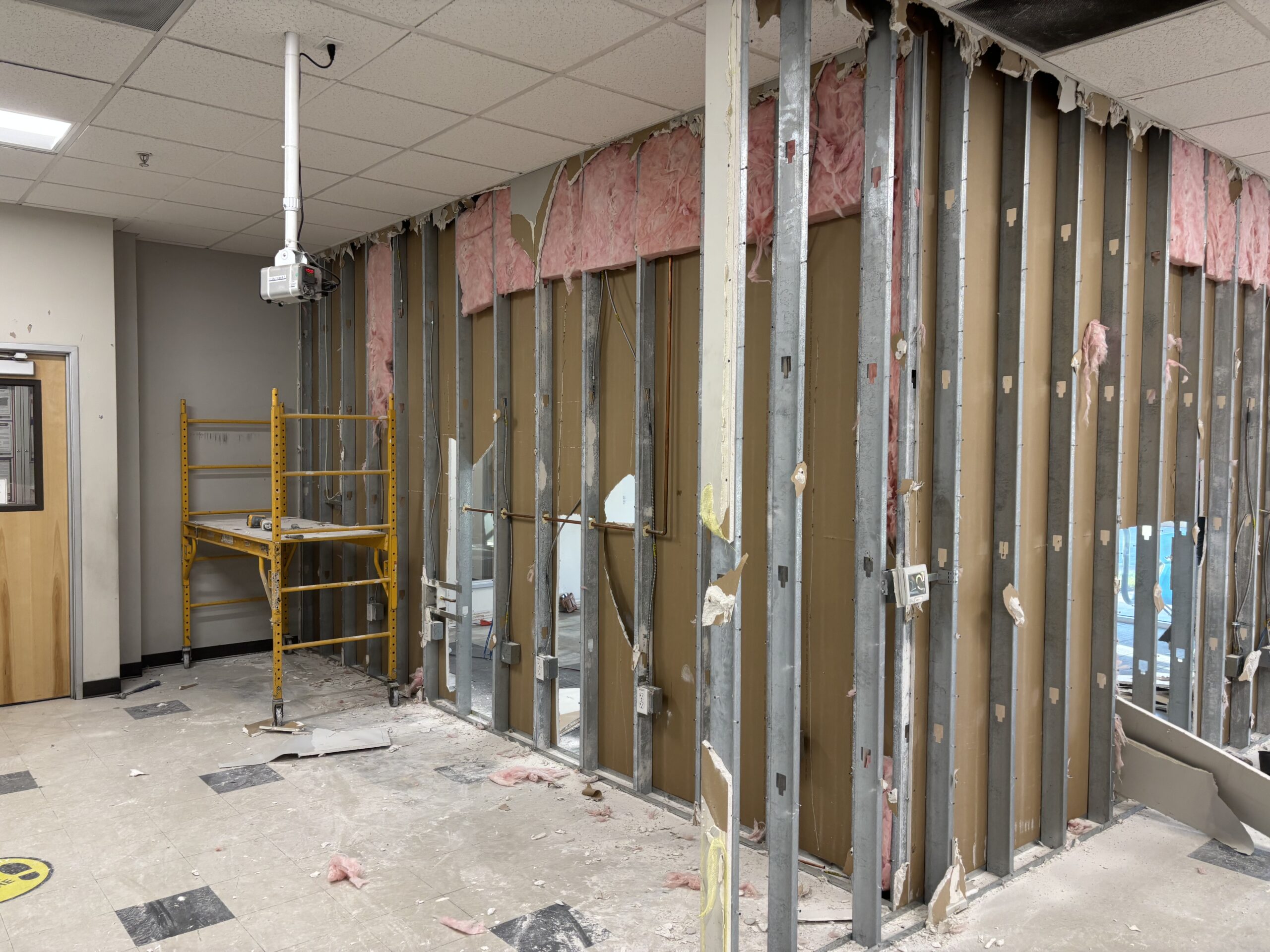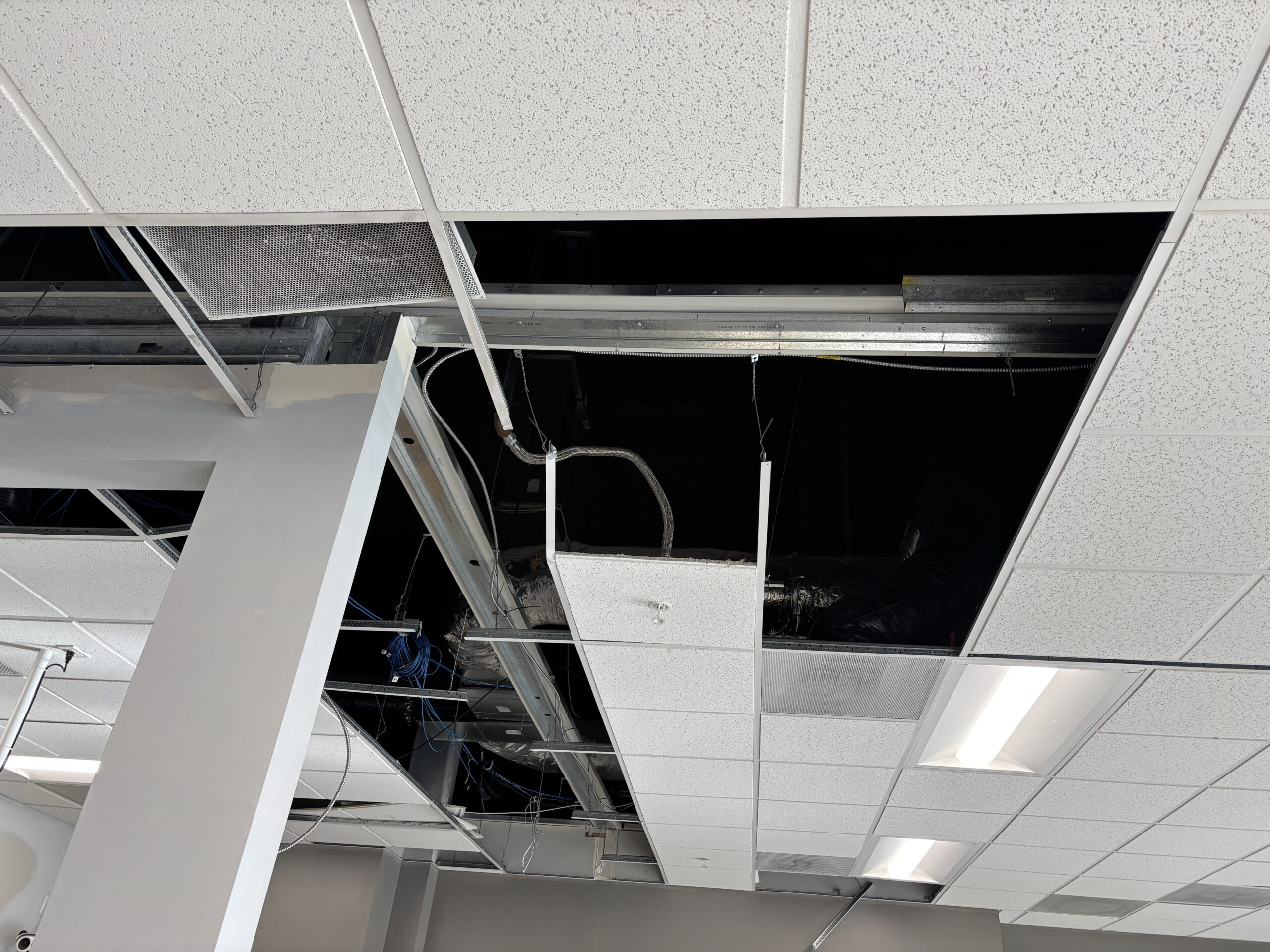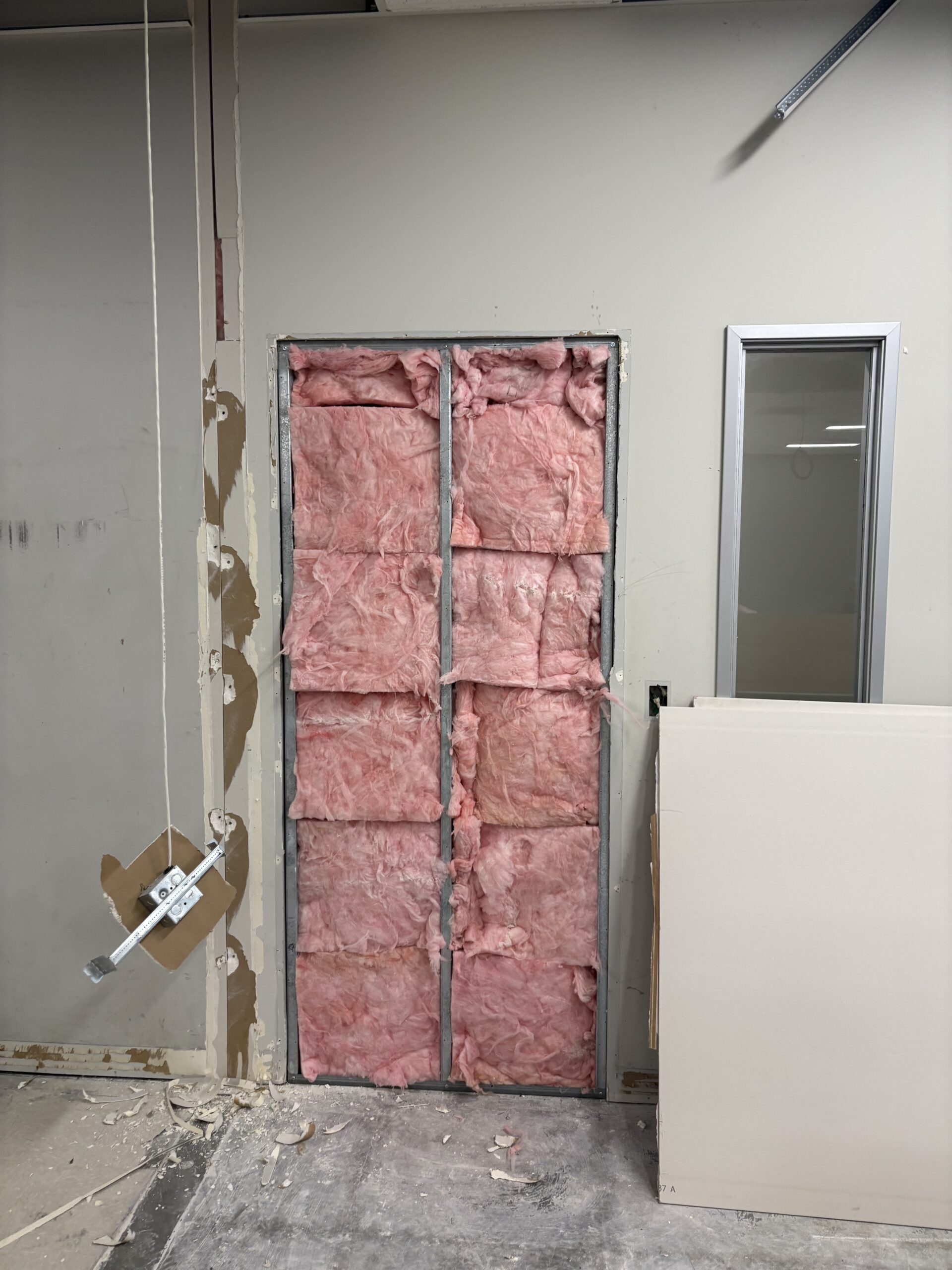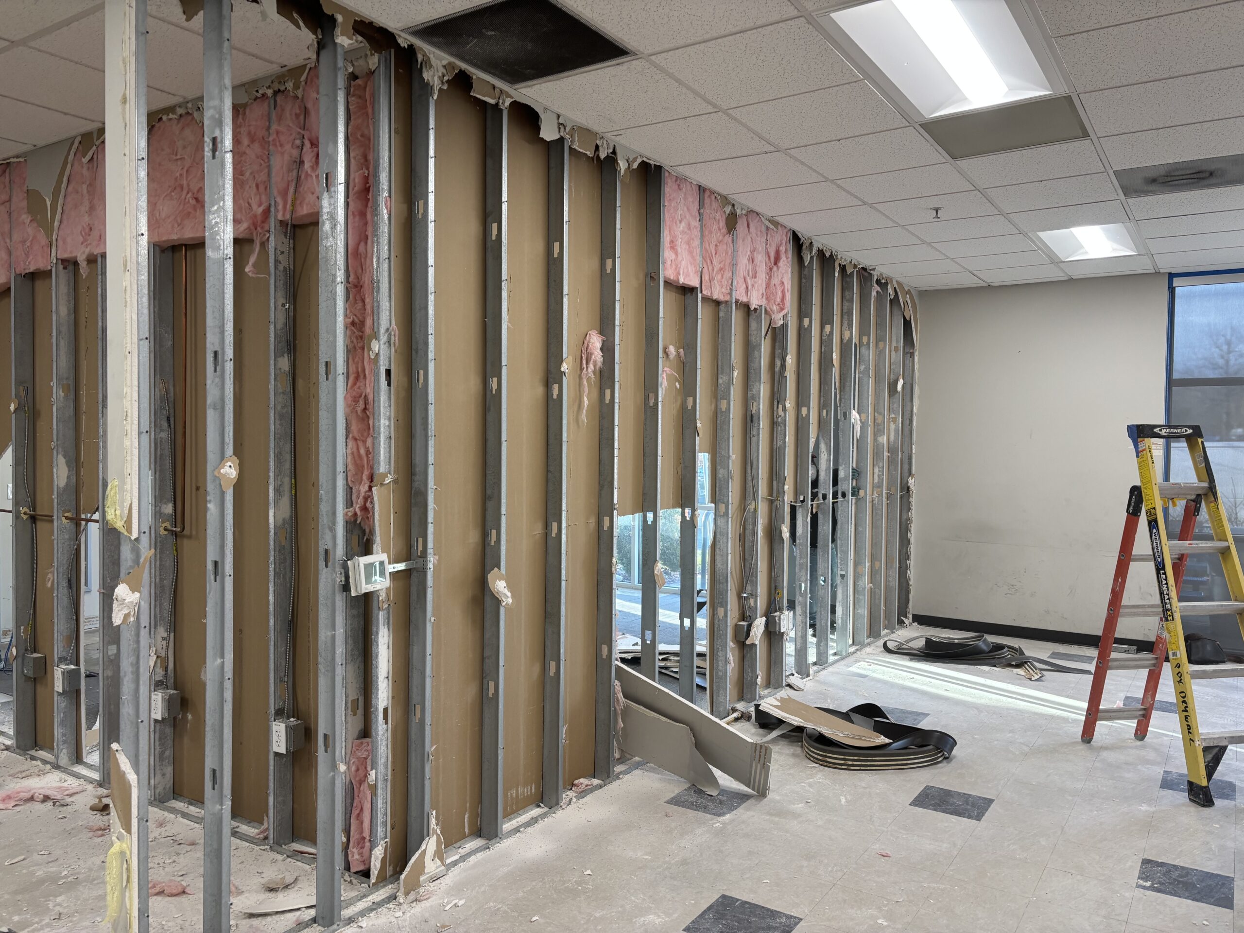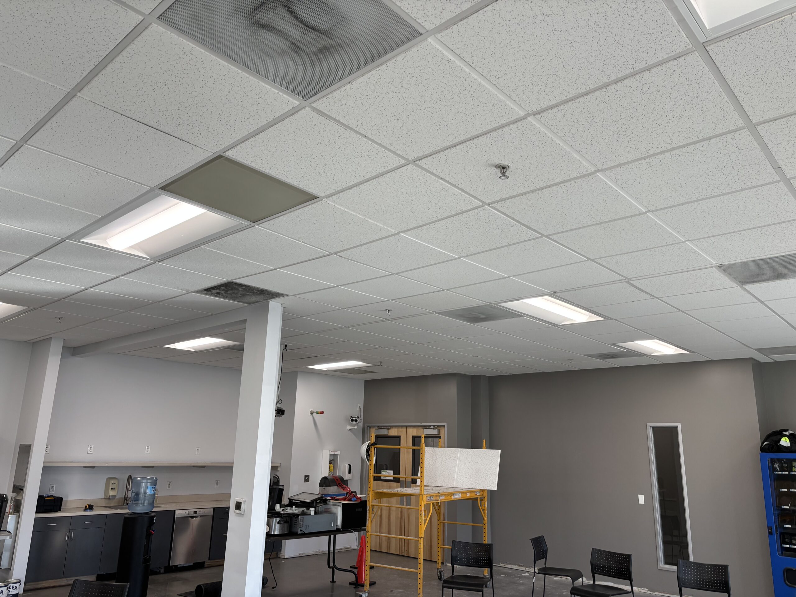 Demo existing office space, drywall patch and repair, and repair grid ceiling; infill existing door and paint.